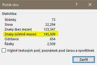 Ve wordu si označte text, který potřebujete opravit a v dolním levém rohu klikněte na „počet slov“.